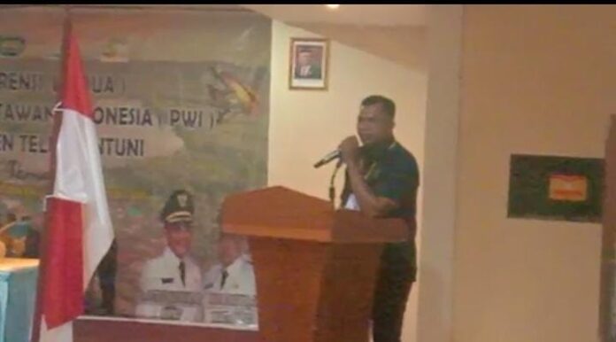 “Selamat atas terpilihnya ketua baru, saya harap Bintuni yang masih dua periode ini bisa menjadi barometer bagi pers nasional, yang sudah di bangun tetap dipertahankan tetap kritis namun dapat bertanggung jawab,” ucapnya (Ren/Melvin Gurning)