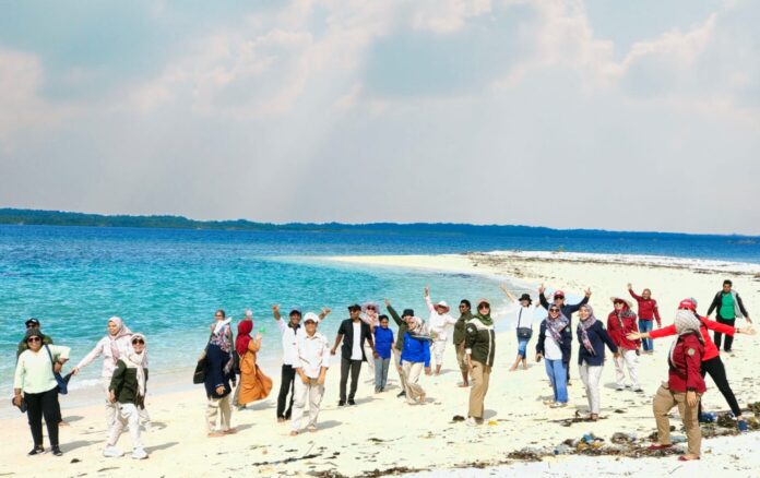 SORONG, Monitorpapapua.com,- Pasir pantai yang putih Pulau Matan, menambah pesona pemandangan warna air laut menjadikan tempat lomba ASN Kemenag Kota Sorong.