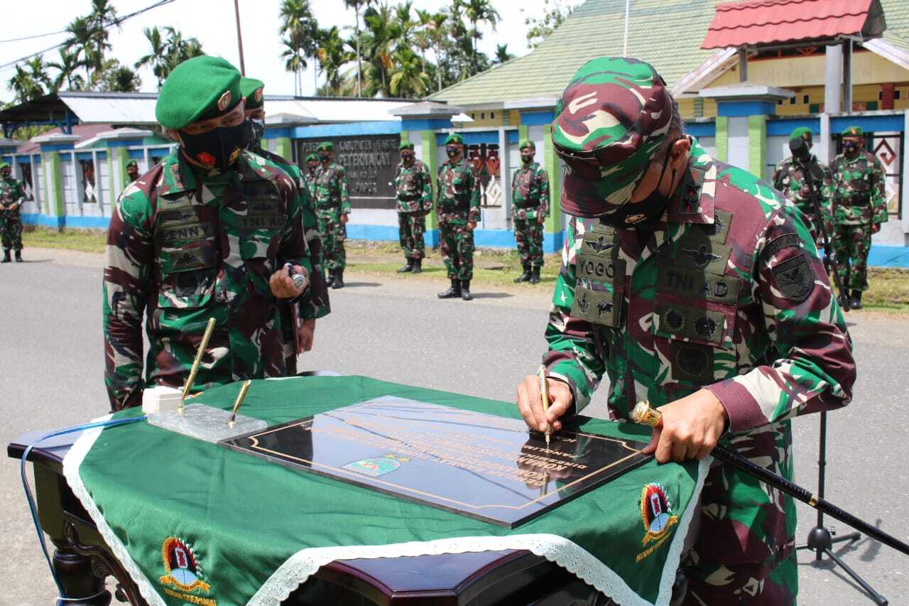 NABIRE-PAPUA, Monitorpapua.com-Usai dua minggu dilantik sebagai Pangdam XVII/Cenderawasih, pada hari ini, Senin (11/1/2021), Pangdam XVII/Cenderawasih Mayjen TNI Ignatius Yogo Triyono, M.A, didampingi oleh Ketua Persit KCK PD XVII/Cenderawasih Ny. Natalia Yogo Triyono dan Aster Kasdam XVII/Cenderawasih Kolonel Inf Wempi Ramandey, melaksanakan kunjungan kerja pertamanya ke Kabupaten Nabire untuk meresmikan pergantian nama Kodim 1705/Paniai menjadi 1705/Nabire.