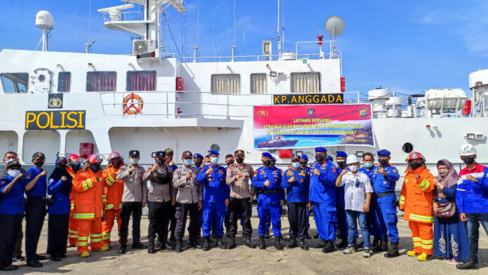 Juga, kapal KP. Anggada 7016 Mabes Polri, dinahkodai Kompol Yudi, PJU Ditpolairud Polda PB, Kasat Polairud Polresta Sorong Saroji, SH., Kapolsek KPPP Laut Sorong, Rifky, Strk., Kepala pemadam pebakaran