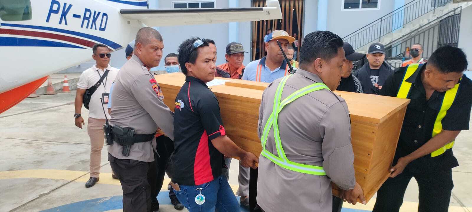 Kabag Ops mengatakan, kedua jenazah yakni Yonathan Arruan (46) dan Asri Obet (58) tiba di Bandara Sentani langsung dibawa ke kediaman Ketua IKT Kab. Jayapura Jhon Lumba di Kompleks BTN Ceria Sentani menggunakan 2 unit mobil ambulance dikawal mobil Patroli Polres Jayapura.